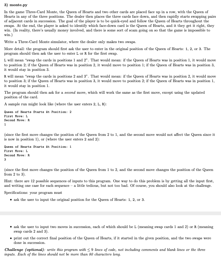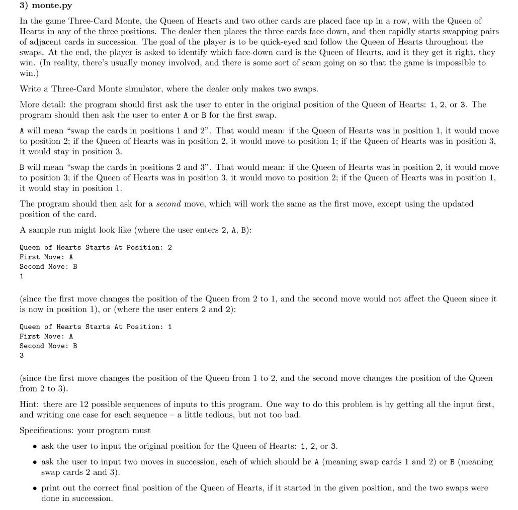 Solved 3 Monte Py In The Game Three Card Monte The Queen Chegg Com